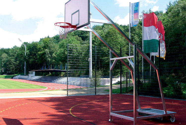 Mobilní basketbalová konstrukce s přesahem 1,65 m je určena především pro víceúčelové hrací plochy.